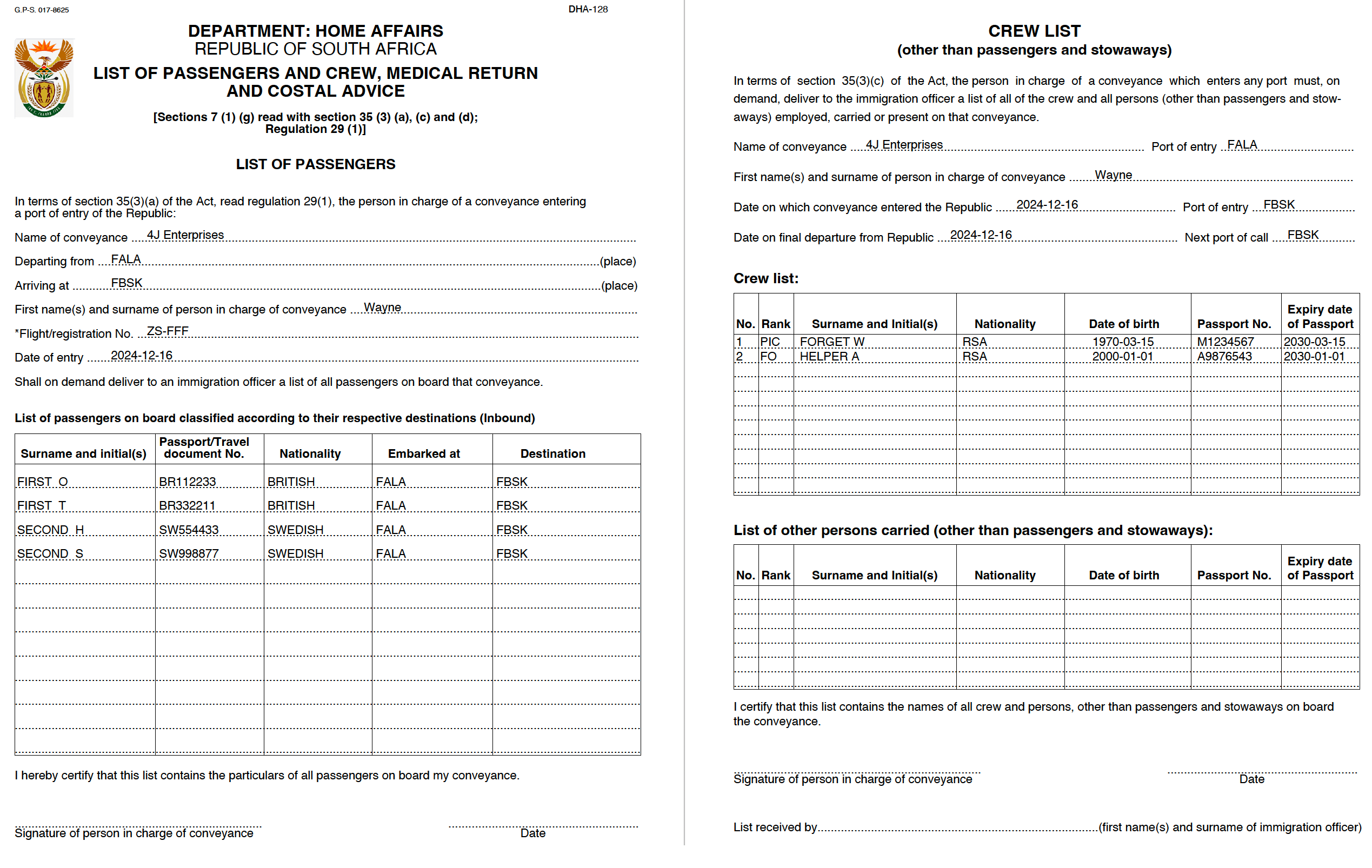 xborder.co.za is a page that generates all necessary cross border documents for flights conduted into and out of South Africa. Build crew lists and recurring passenger details to create the required documents in minutes. Subscription is free at the moment.